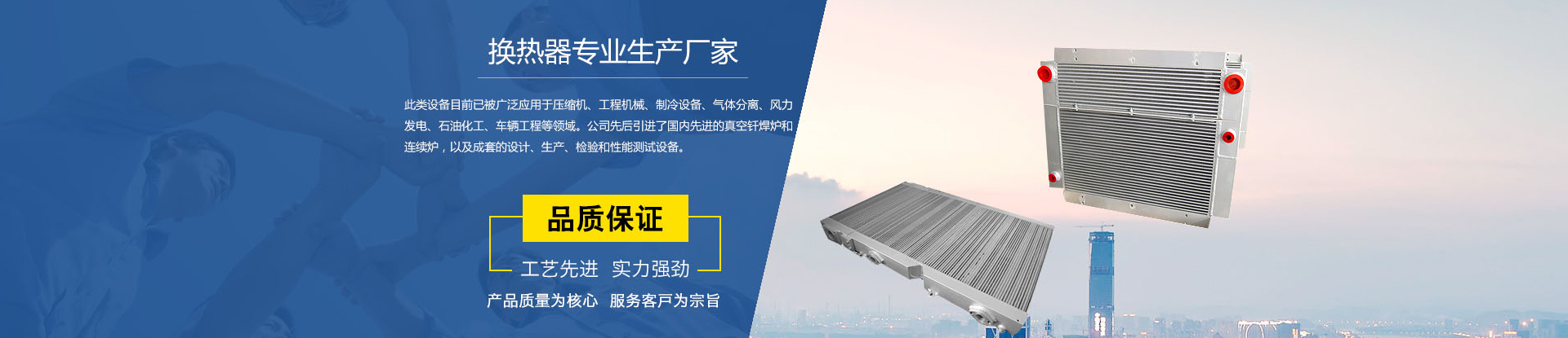 散熱器廣泛應用于多個行業,例如壓縮機,真空泵,工程機械,化工,火車,汽車及其他工業應用領域。質量是萬盛持續發展的生命,信譽是萬盛永恒追求的目標。